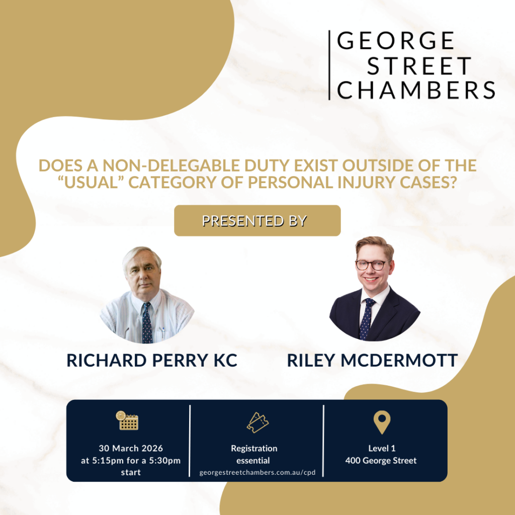 At George Street Chambers, our members are dedicated to providing exceptional Continuing Professional Development (CPD) opportunities for legal professionals across all areas of commercial law. Our seminars are specifically designed to keep barristers, solicitors, and other legal practitioners informed of the latest developments in the law, ensuring they uphold the highest standards of professional practice.